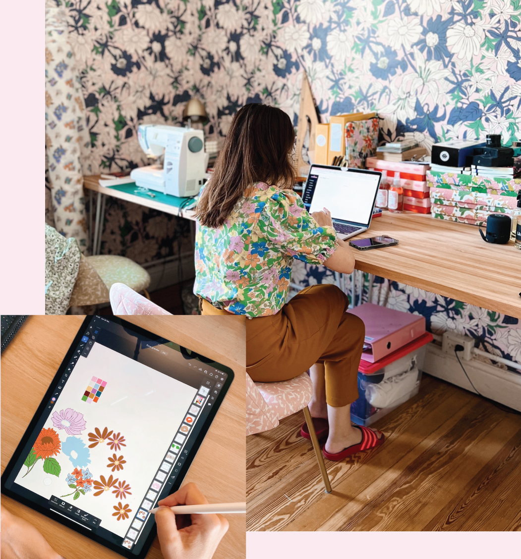 Dibujos mano alzada, que luego se digitaliza, para dar comienzo al juego de mezclar colores, y crear diferentes paletas para cada diseño.